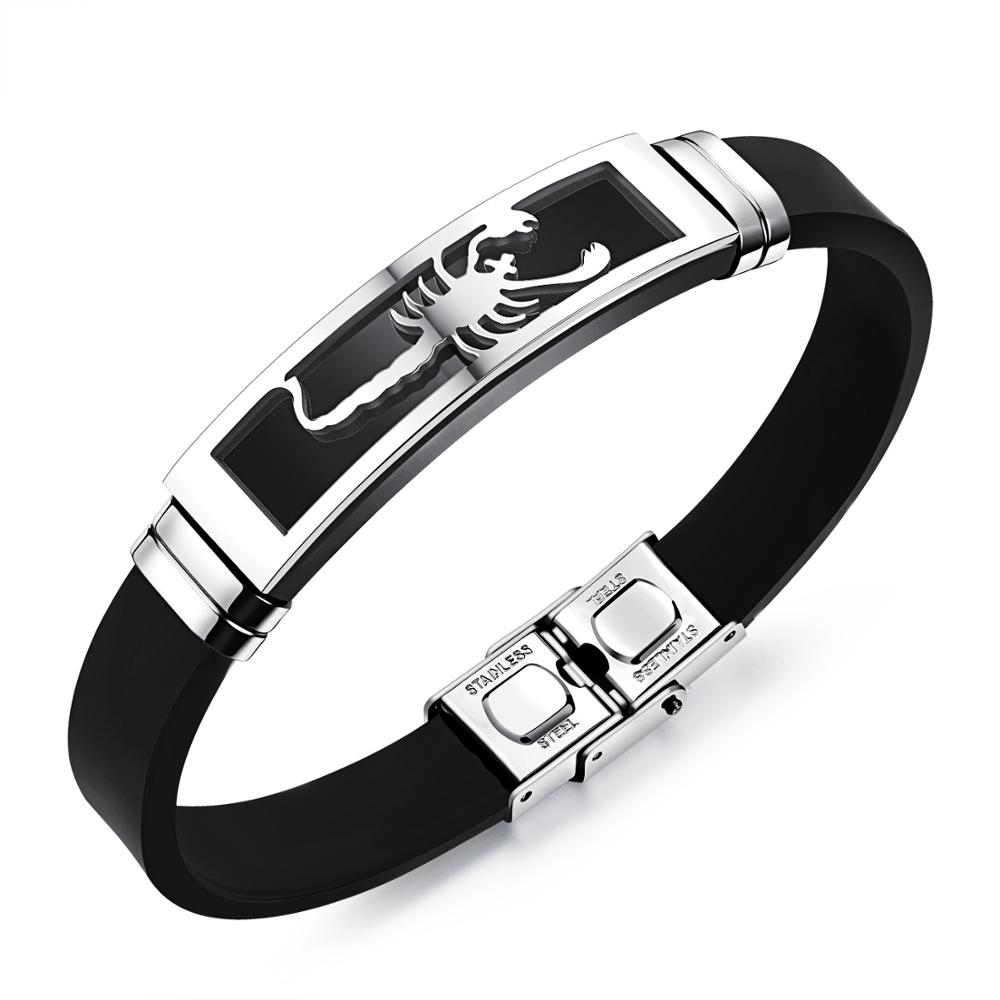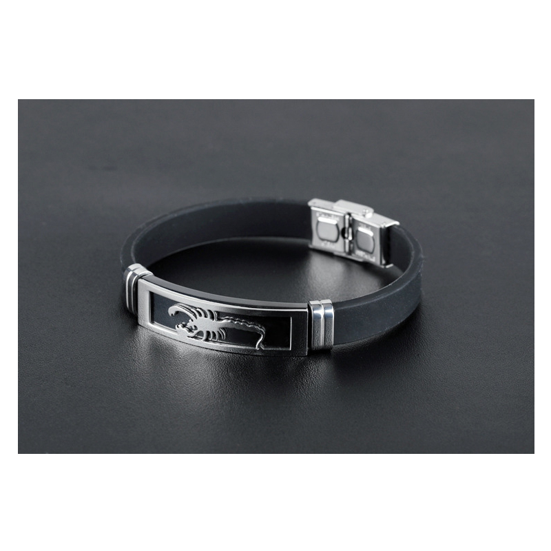 Bratara barbateasca din silicon cu model placa scorpion, otel inoxidabil, 20 cm, argintiu