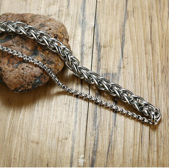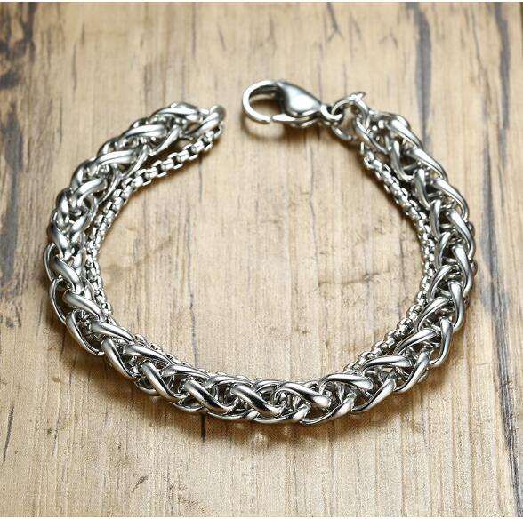 Bratara barbateasca dubla din otel inoxdabil, design cubic, argintiu