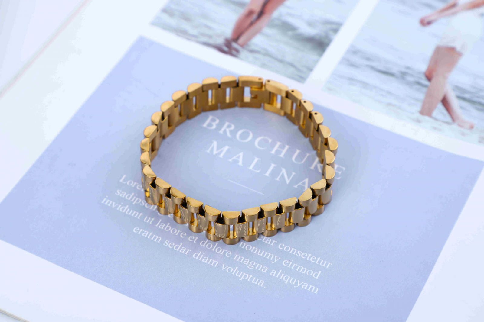 Bratara din otel inoxidabil link chain placata cu aur 18k