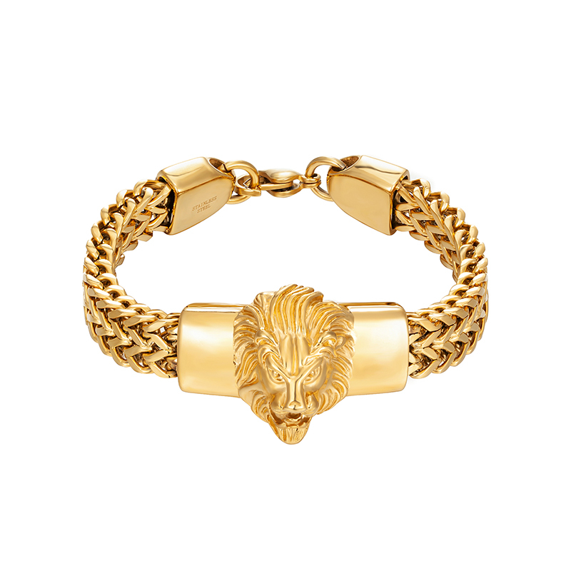 Bratara Cap de leu din otel inoxidabil, placat cu aur 18K, prindere magnet, auriu