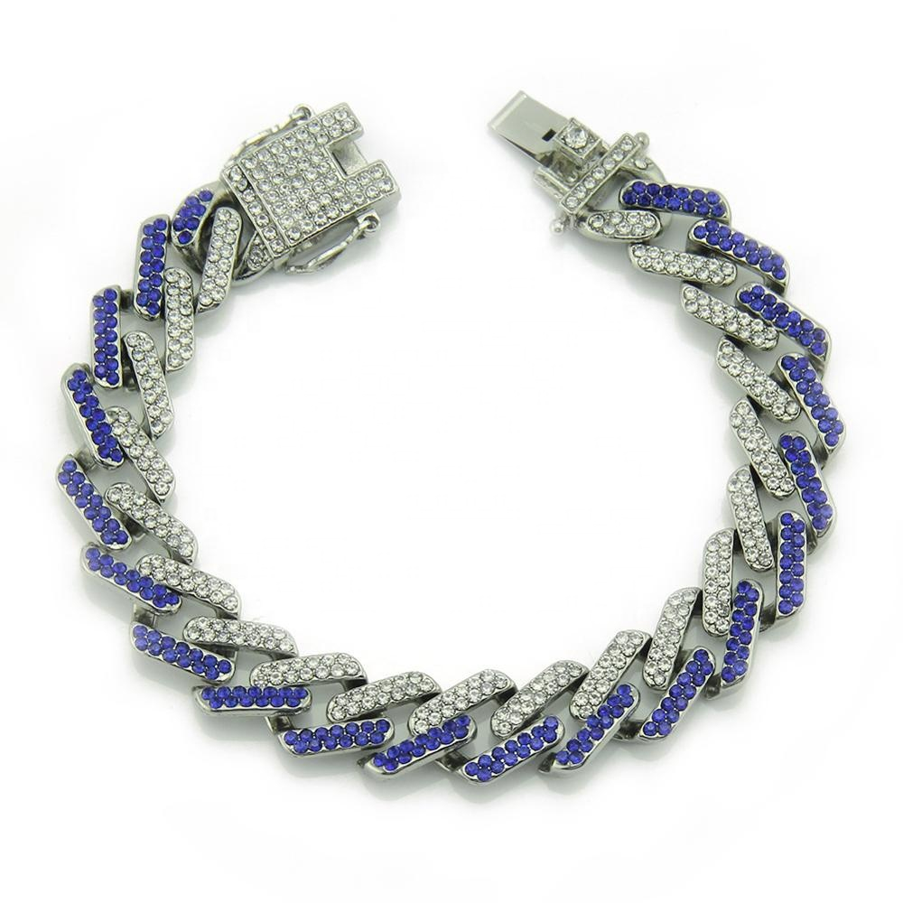 Bratara Cuban Chain culoare dubla, placat cu aur 18K, pietre zirconiu. albastru