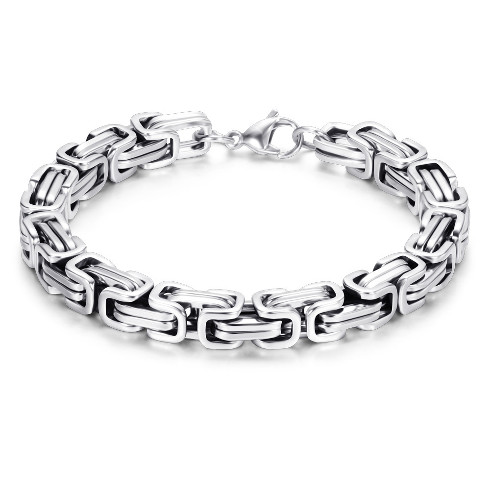 Bratara lant din otel inoxidabil, model Byzantine, placat cu aur 18K, argintiu
