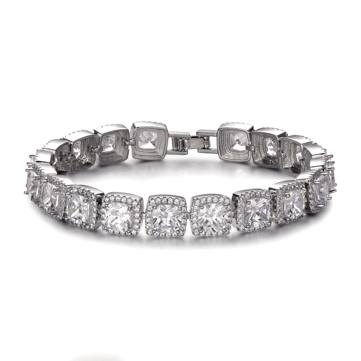 Bratara model Cuban Diamond luxury, 12mm, placat cu aur 18K, pietre zirconiu, argintiu
