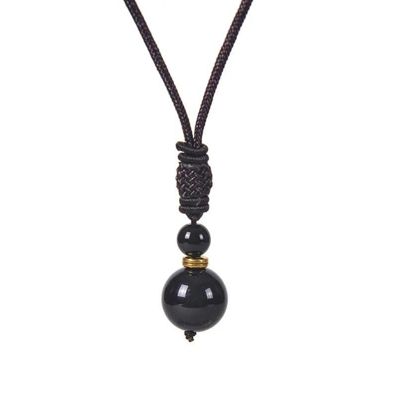 Colier din snur textil cu pandantiv din piatra naturala, lucrat manual, unisex, Tessero, negru