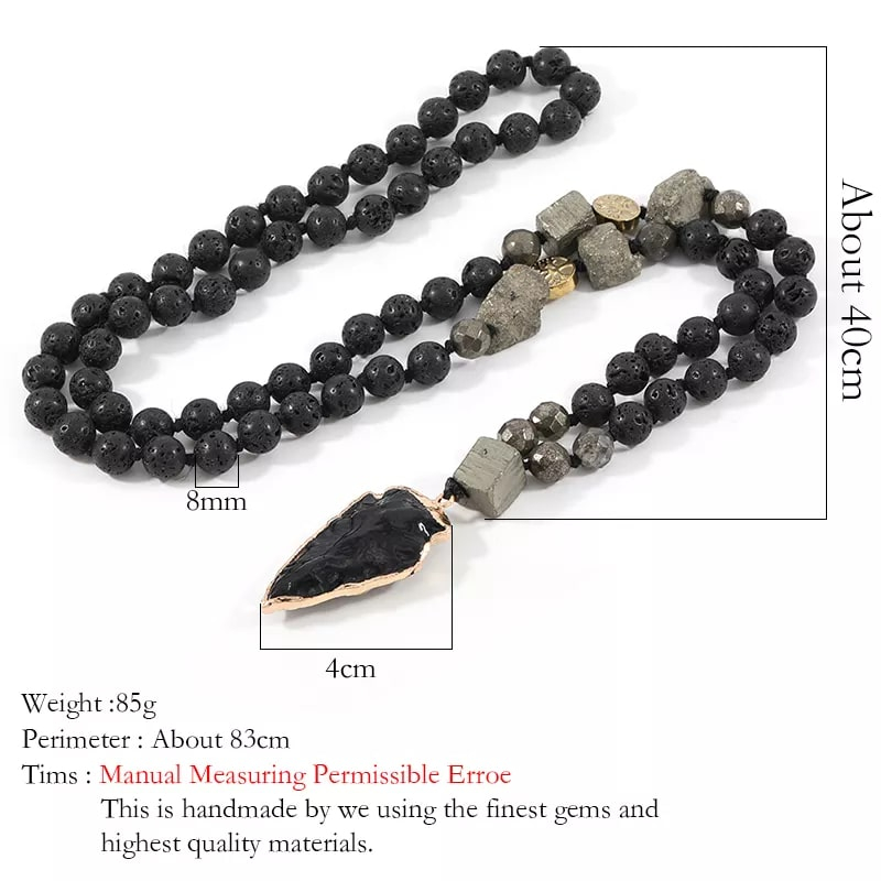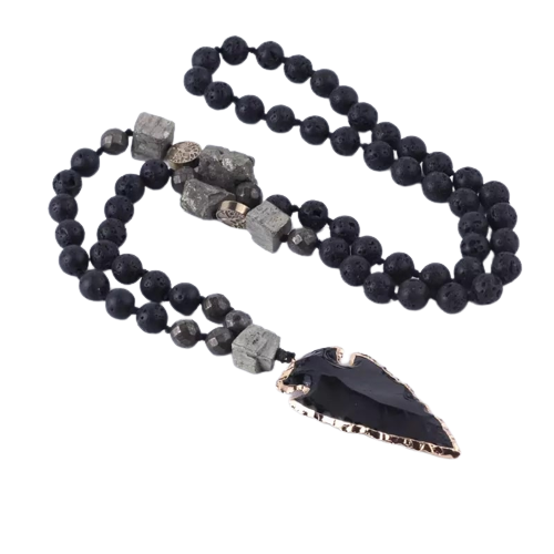 Colier Viking din roca vulcanica cu amuleta norocoasa in forma de varf sageata, 83 cm, Tessero, negru