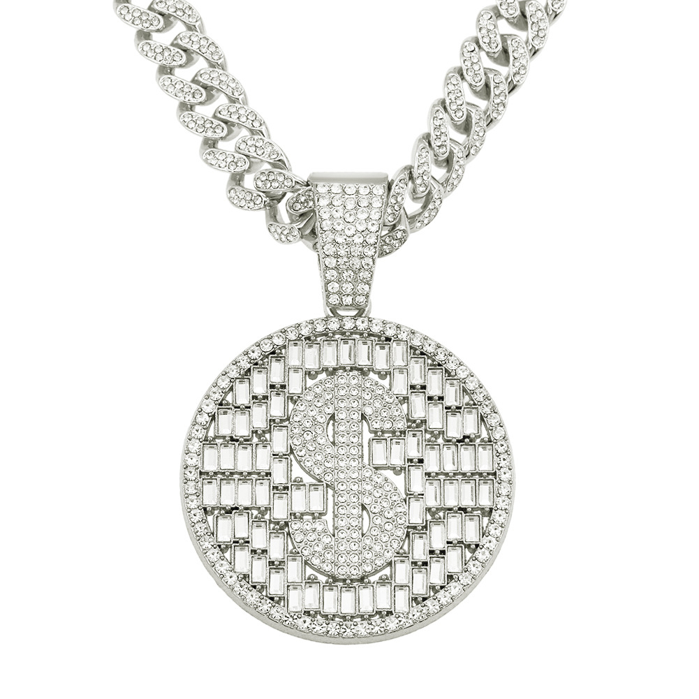 Lantul Cuban Chain Iced Out cu pandantiv model in forma de dolar este un accesoriu elegant si in trend, perfect pentru oricine doreste sa adauge un plus de stil si stralucire tinutelor sale.