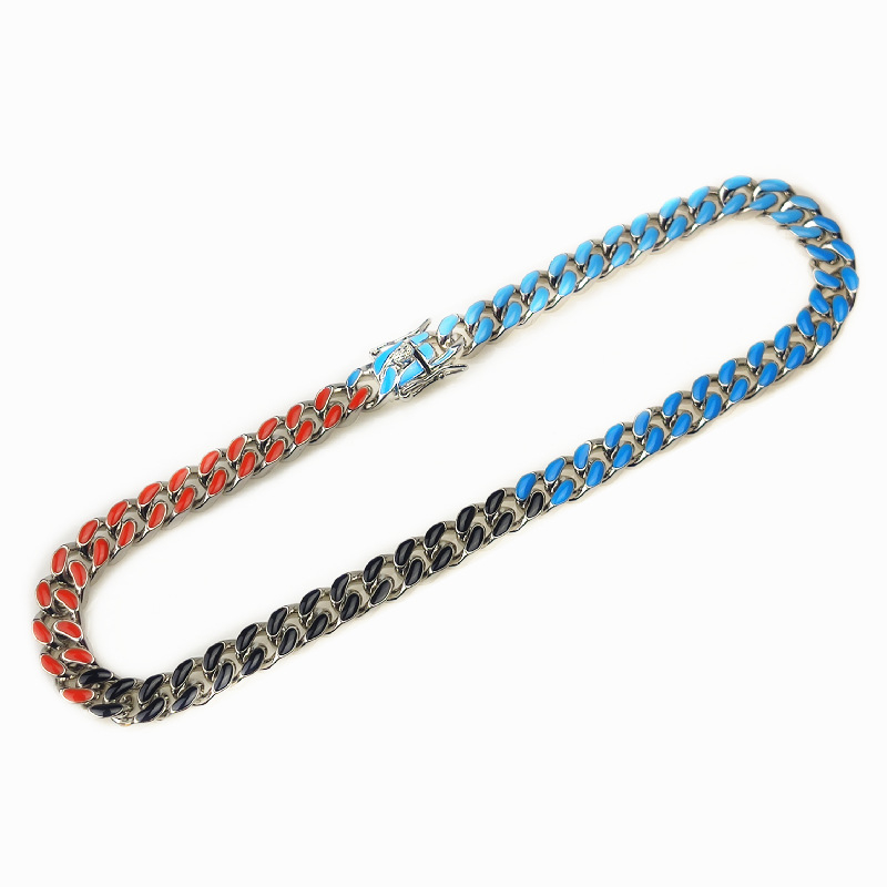 Lant Cuban Chain Link, multicolor, 50 cm, argintiu