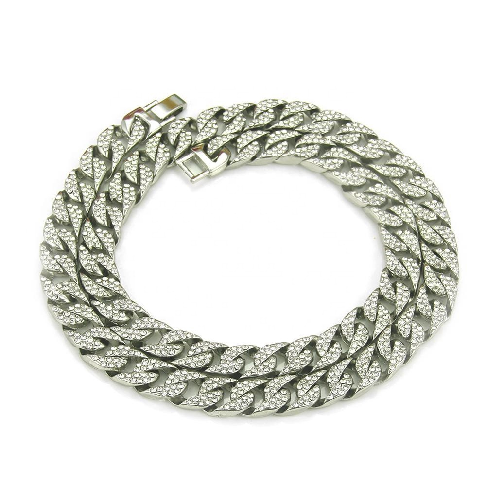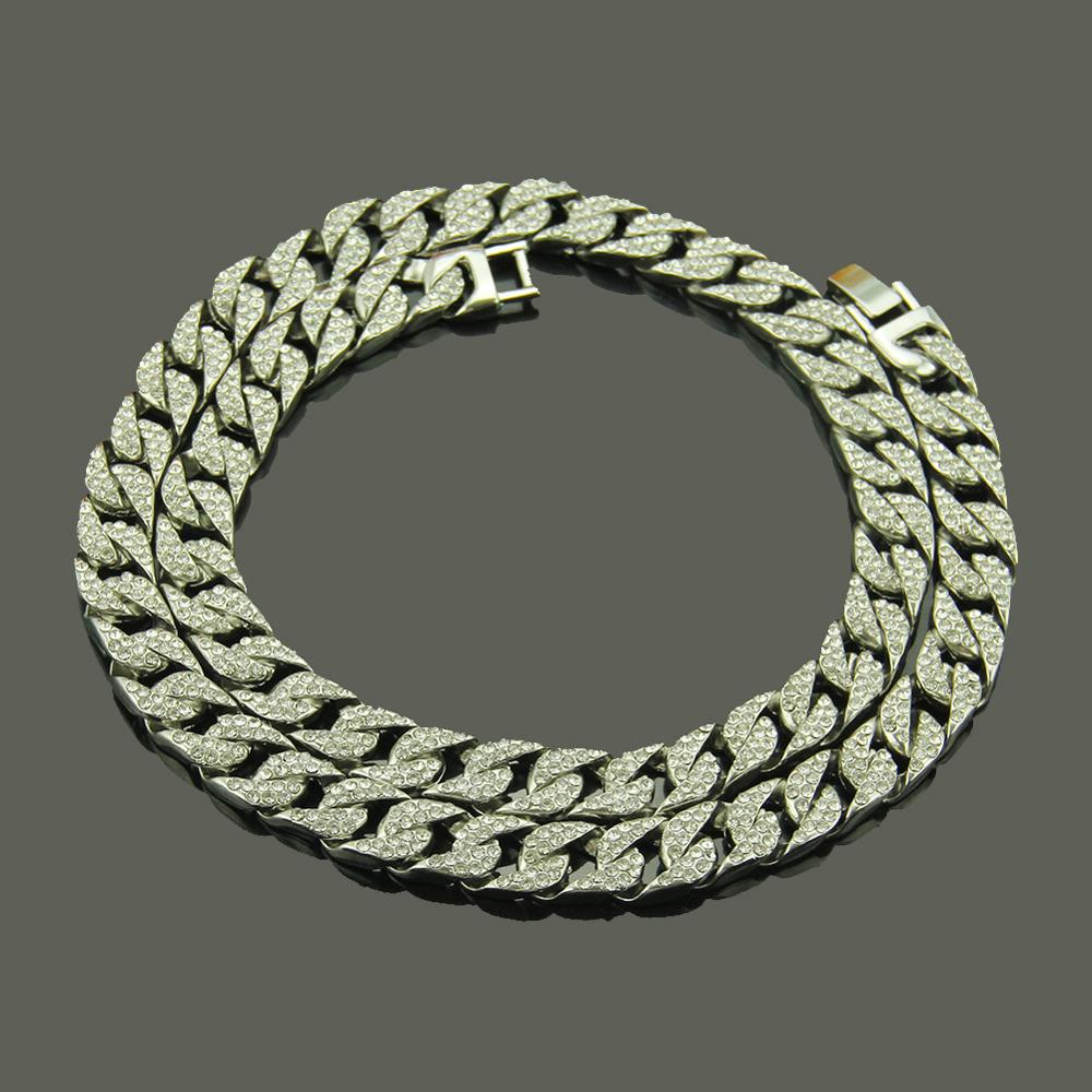 Lant Cuban Chain Link, placat cu aur 18K, insertii de ziconiu alb, 75 cm