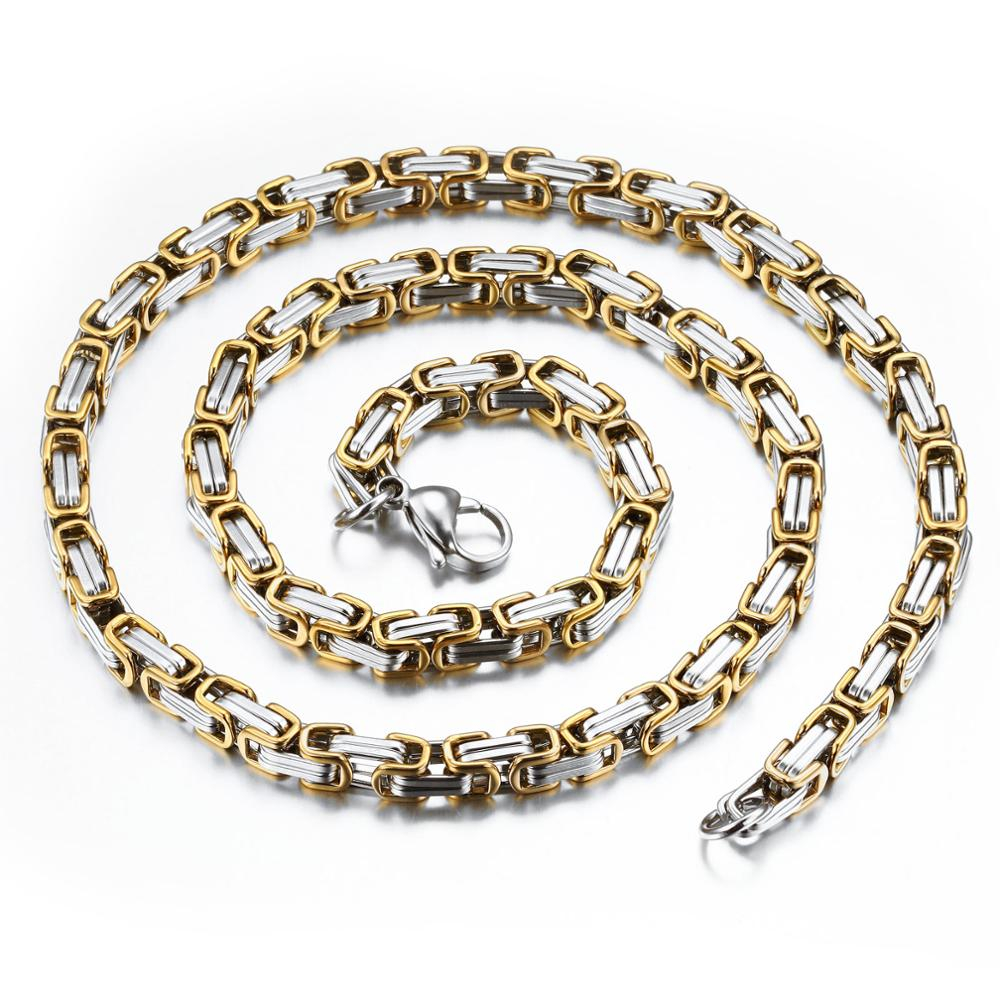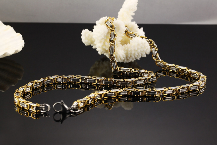 Lant de gat, model Byzantine, placat cu aur 18K, 6mm, 55 cm, otel inoxidabil, Tessero, auriu si argintiu
