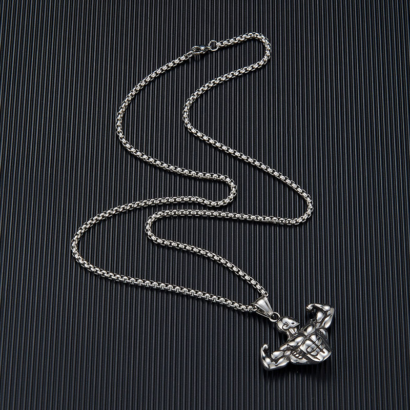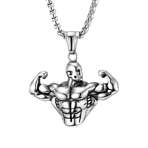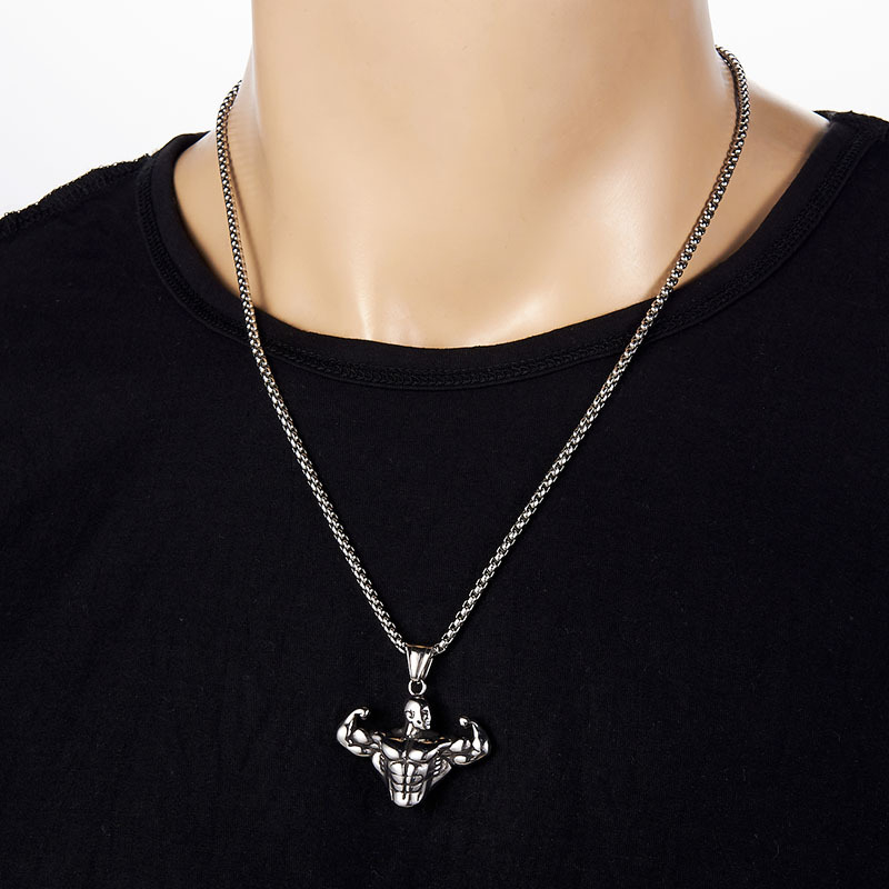 Lantisor barbatesc cu pandantiv model in forma de culturist, otel inoxidabil, Tessero, argintiu