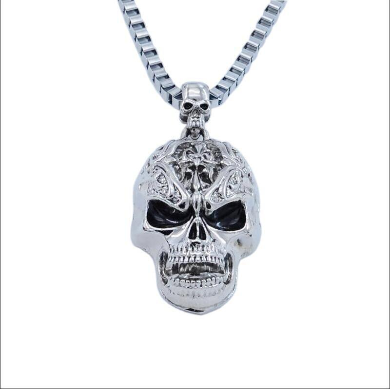 Lantisor barbatesc model Punk cu pandantiv cap de mort, otel inoxidabil, placat cu aur 18k, Tessero, argintiu