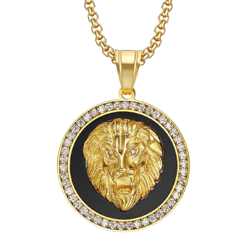 Lantisor cu pandantiv cap de leu din otel inoxidabil, placat cu aur 18K