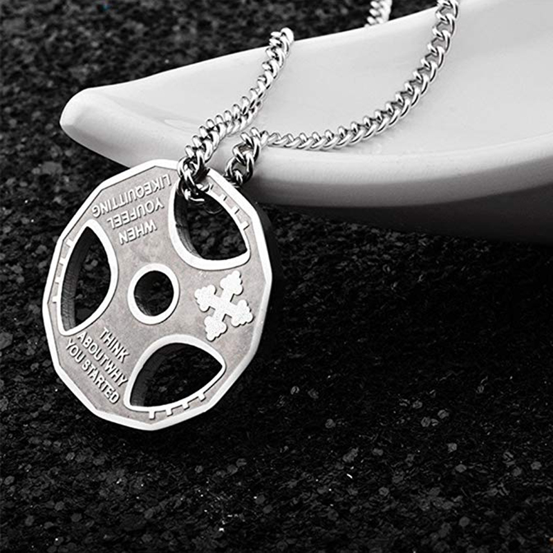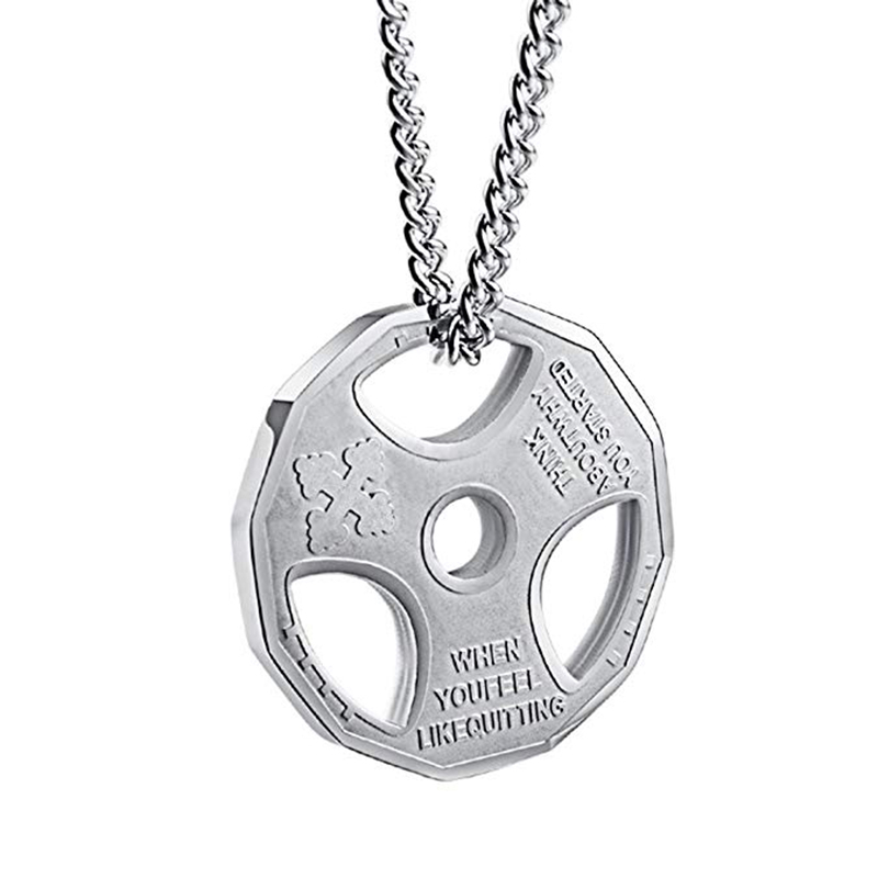 Lantisor cu pandantiv greutate sala fitness, otel inoxidabil, argintiu