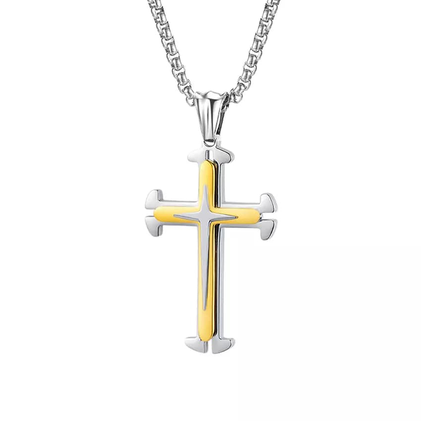 Lantisor cu pandantiv in forma de cruce cu efect dublu, placat cu argint, unisex, Tessero, auriu