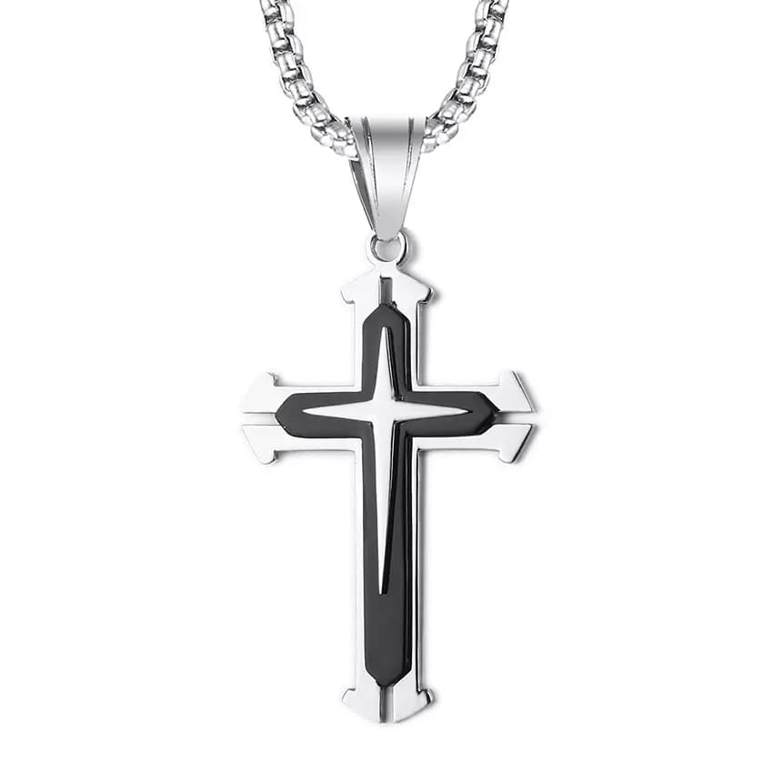 Lantisor cu pandantiv in forma de cruce cu efect dublu, placat cu argint, unisex, Tessero, negru