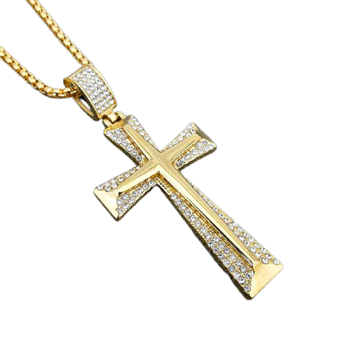 Lantisor model cubic si pandantiv in forma de cruce, pietre zirconiu alb, placat cu aur 18K