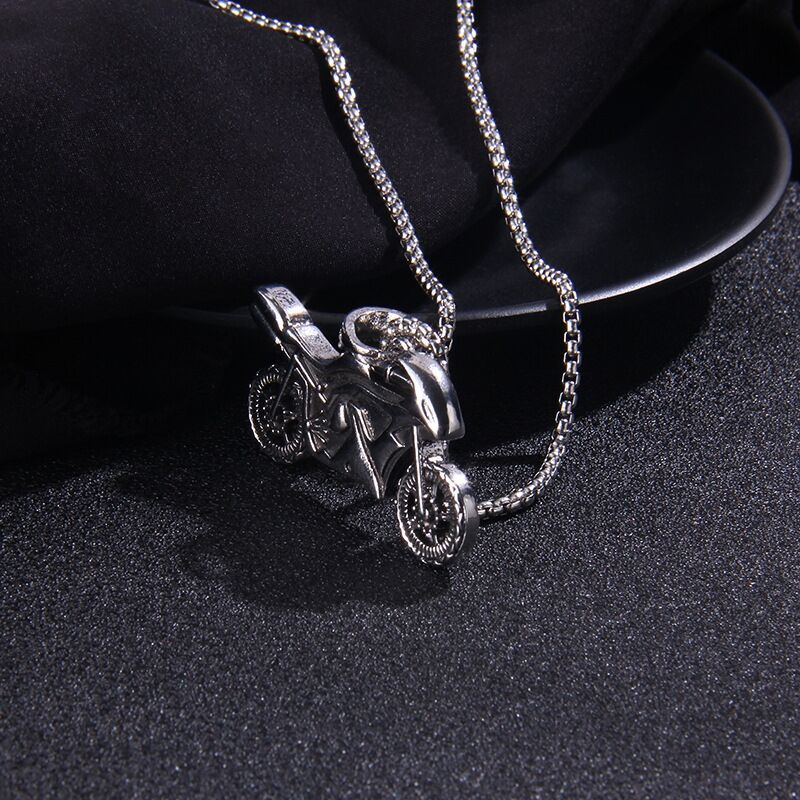 Lantisor design cubic cu pandantiv in forma de motocicleta, placat cu argint, Tessero, 65 cm, argintiu