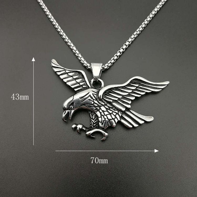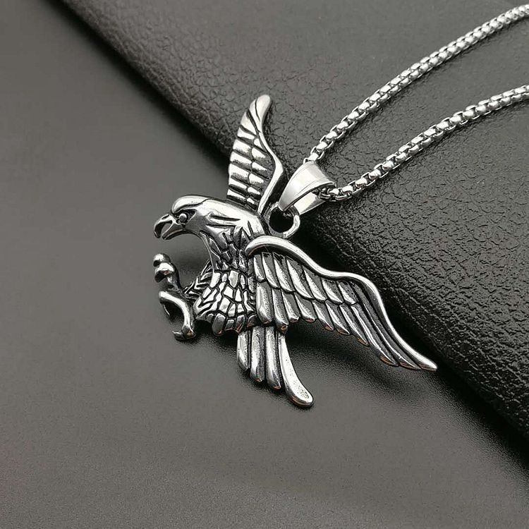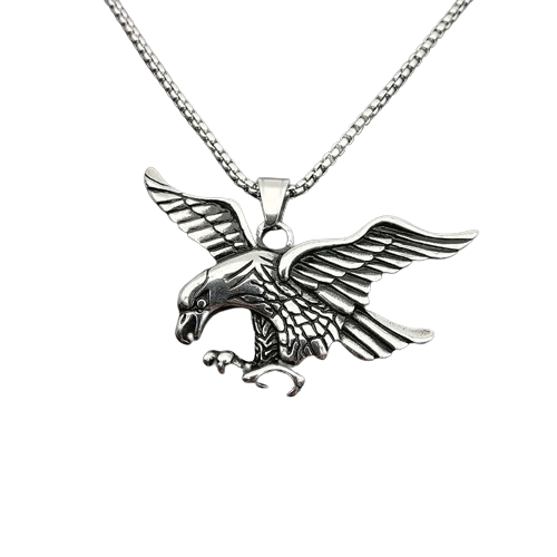 Lantisor design cubic cu pandantiv in forma de vultur cu aripile deschise, placat cu argint, Tessero, argintiu