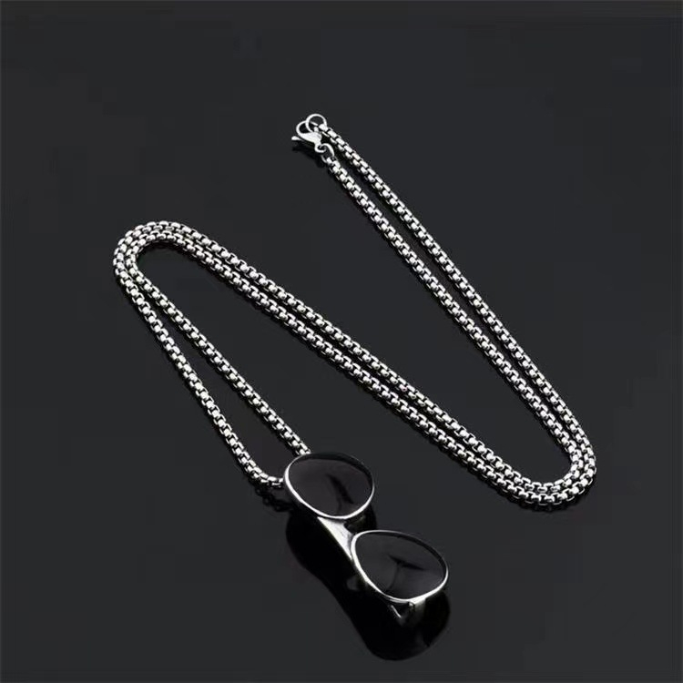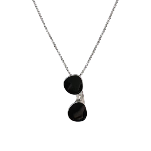 Lantisor design cubic cu pandantiv in forma ochelari de soare, otel inoxidabil, placat cu argint, Tessero, argintiu