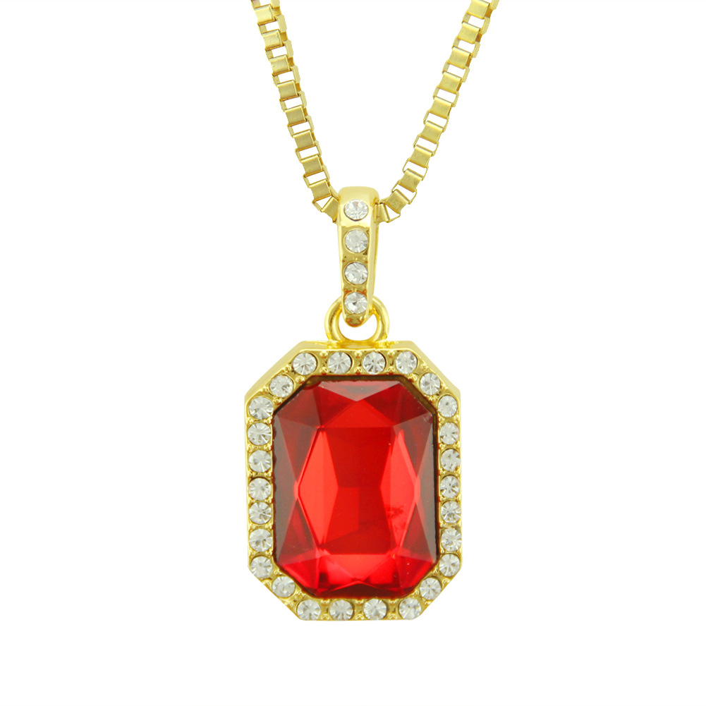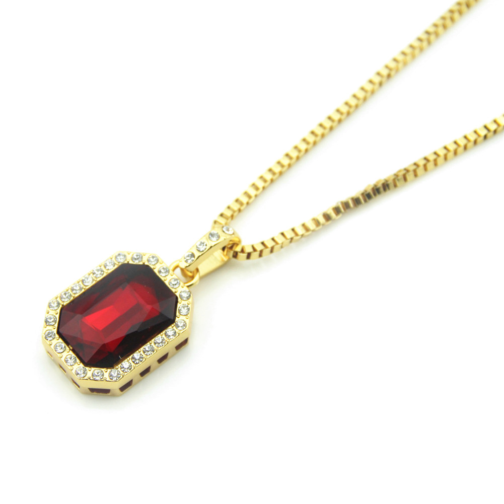 Lantisor model Hip Hop cu pandantiv cu efect de Rubin, pietre zirconiu, unisex, 60 cm, Tessero, auriu