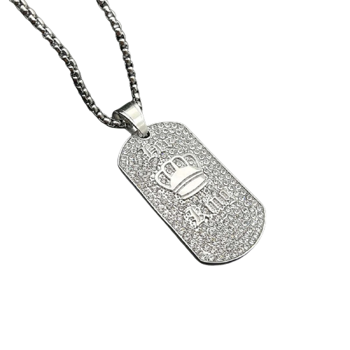 Lantisor si pandantiv placuta identicare nume, pietre zirconiu, placat cu aur 18K