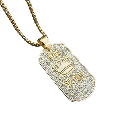 Lantisor si pandantiv placuta identicare nume, pietre zirconiu, placat cu aur 18K