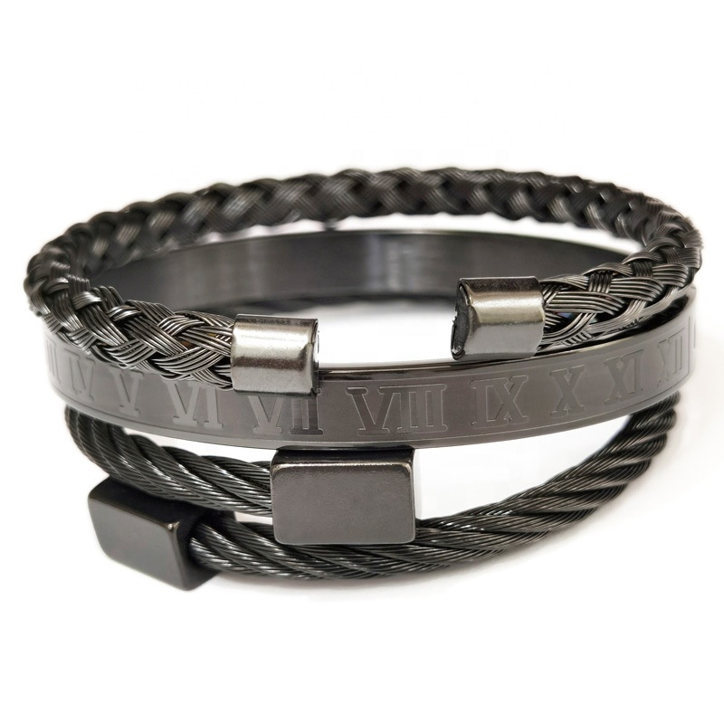 Set de 3 bratari din otel inoxidabil, placate cu aur 18k, cifre romane luxury