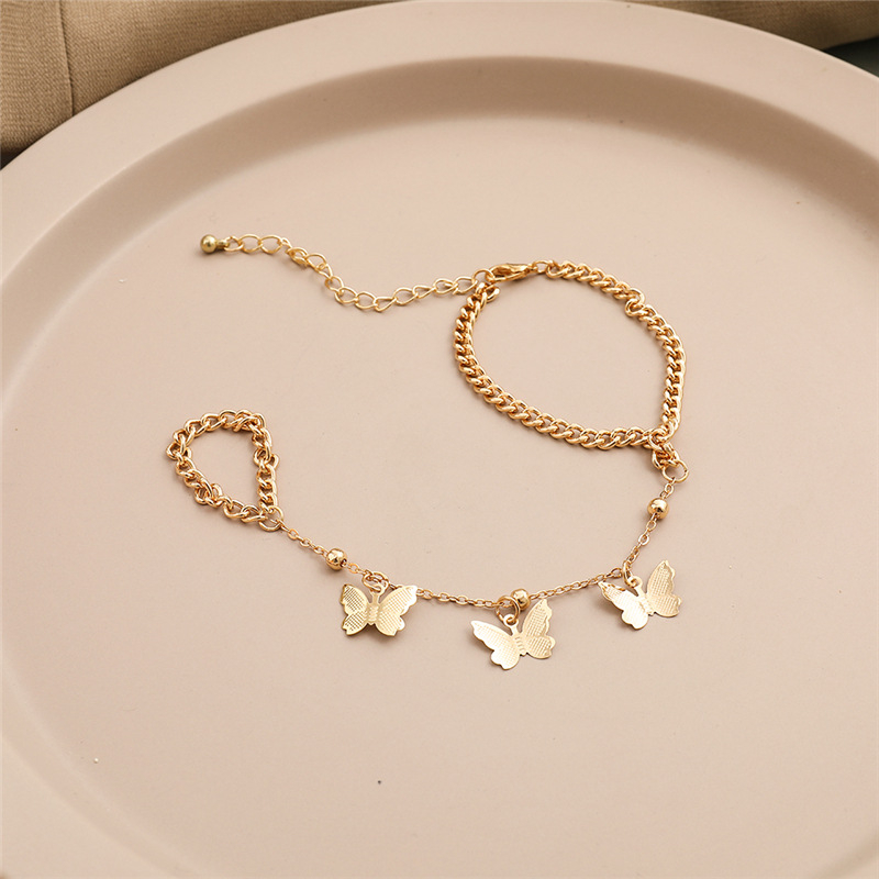 Bratara arabeasca pentru mana cu inel, model cu fluturi, placata cu aur 18K, auriu