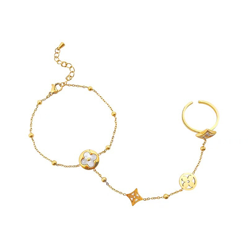Bratara cu inel reglabil, model tip arabesc, charm-uri in forma de trifoi, otel inoxidabil placat cu aur 18K, marime reglabila, Tessero, auriu