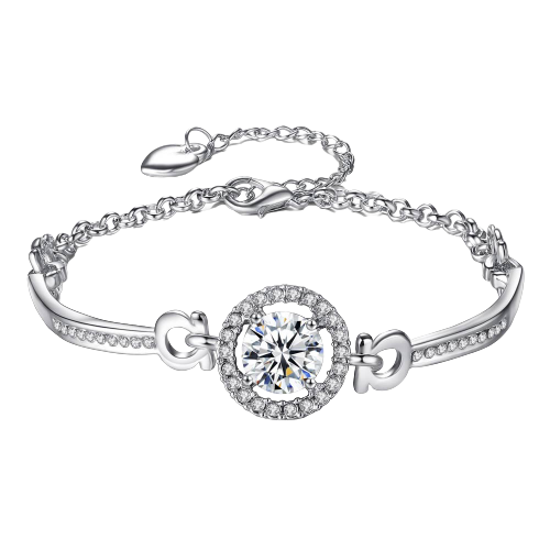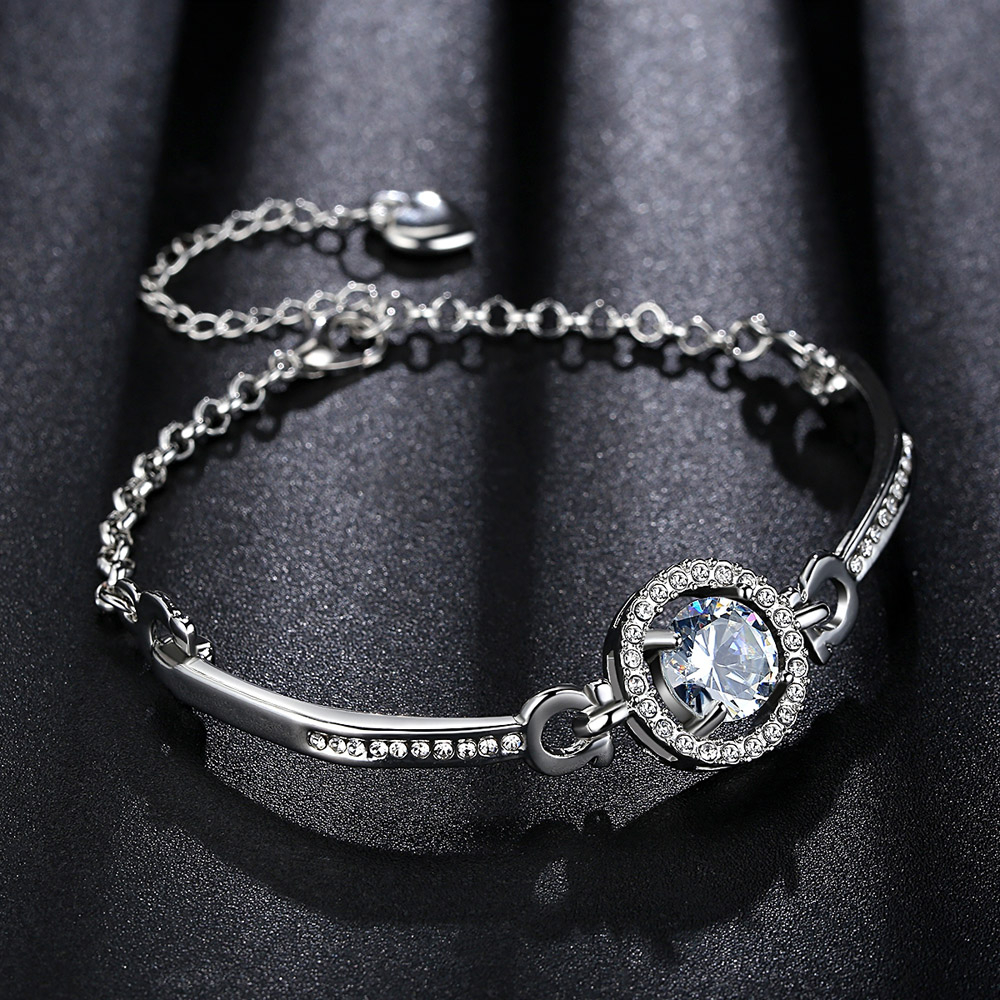 Bratara de dama, cristal si pietre zirconiu, marime reglabila, placat cu argint