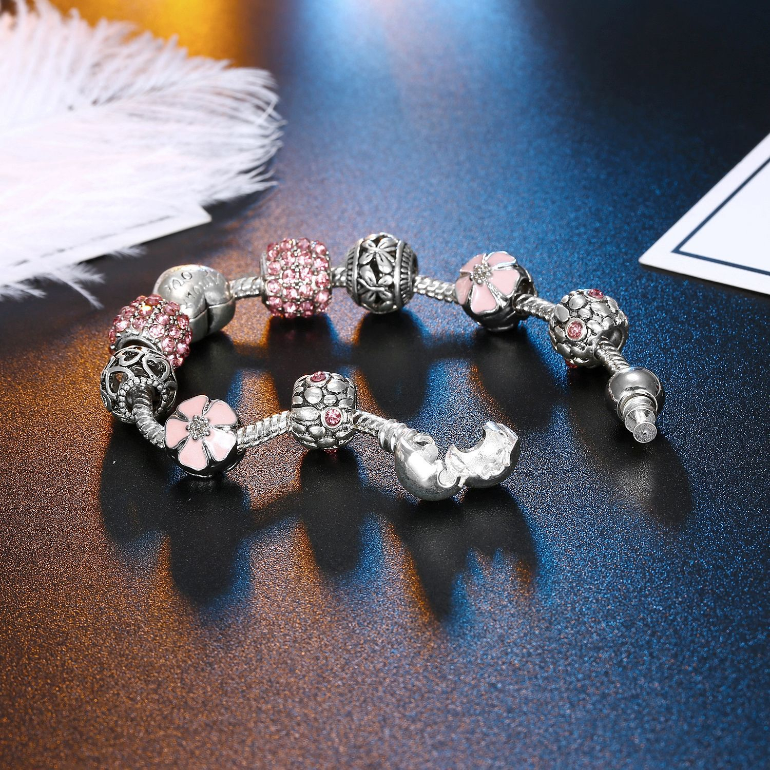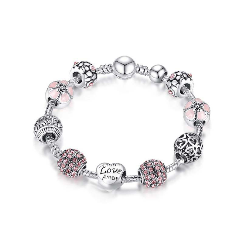 Bratara de dama cu 10 charmuri, placat cu argint, 18 cm, argintiu