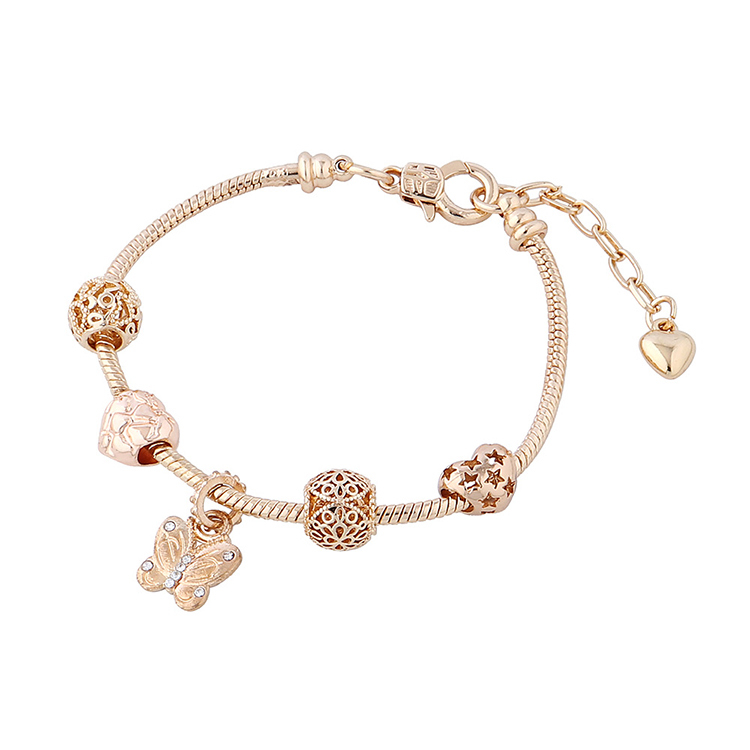 Bratara tip Pandora cu charmuri placata cu aur 18K