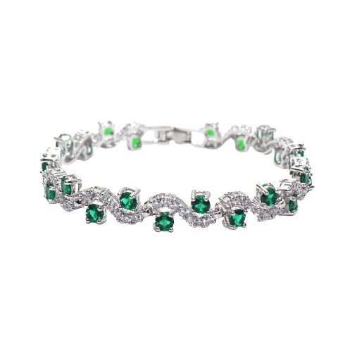Bratara de dama cu pietre din zirconiu si cristale cu efect de Sapphire, placat cu argint, Tessero, 17 cm, inchidere clips, argintiu si verde