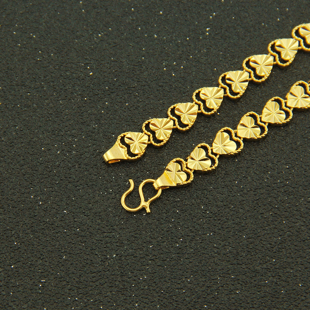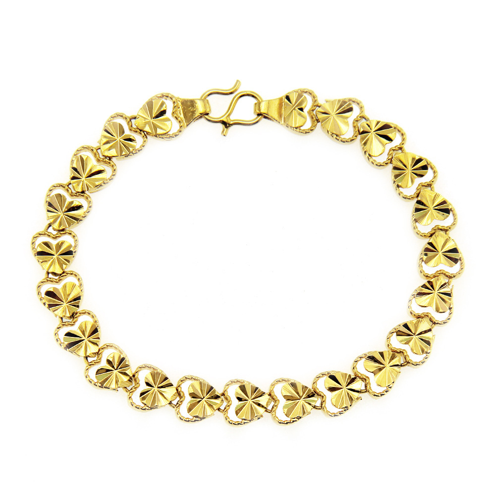 Bratara de dama din aliaj cu model in forma de inimioare, placat cu aur 18K, Tessero, auriu
