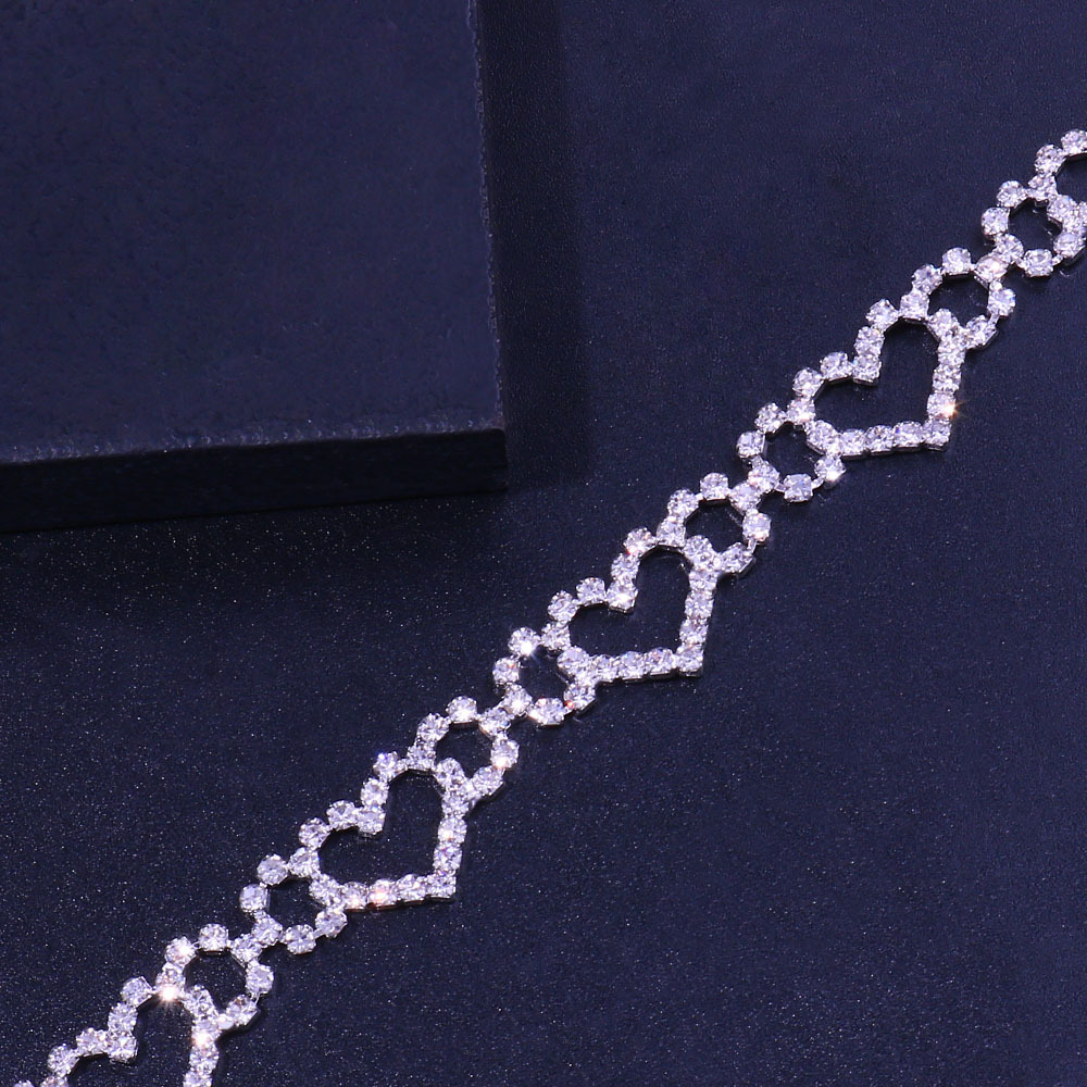 Bratara de dama pentru picior, cu model in forma de inima, pietre zirconiu, argintiu