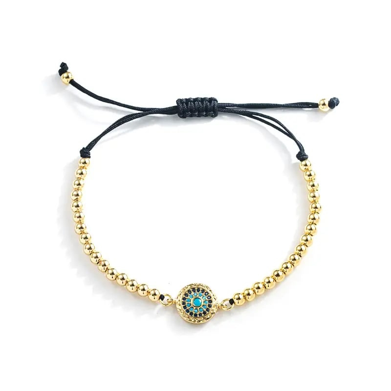 Bratara de mana luxury cu bilute placate cu aur 18K, charm model Evil Eye, marime reglabila, unisex, Tessero, auriu