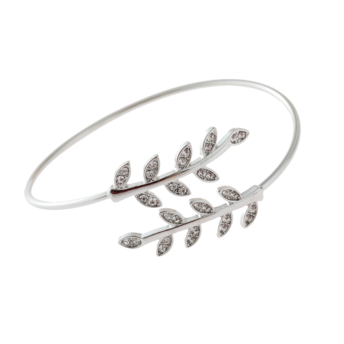 Bratara de mana tip Bangle, model cu frunze, placat cu aur 18K, pietre zirconiu, marime reglabila, argintiu