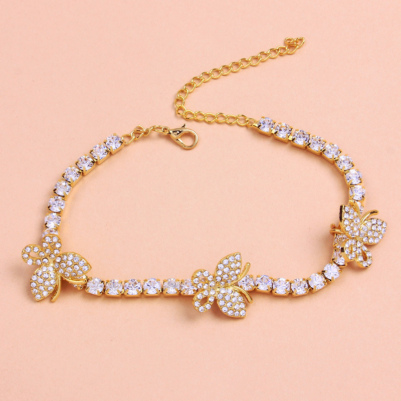 Bratara de picior model Tennis cu fluturasi, pietre zirconiu alb, placat cu aur 18K, auriu