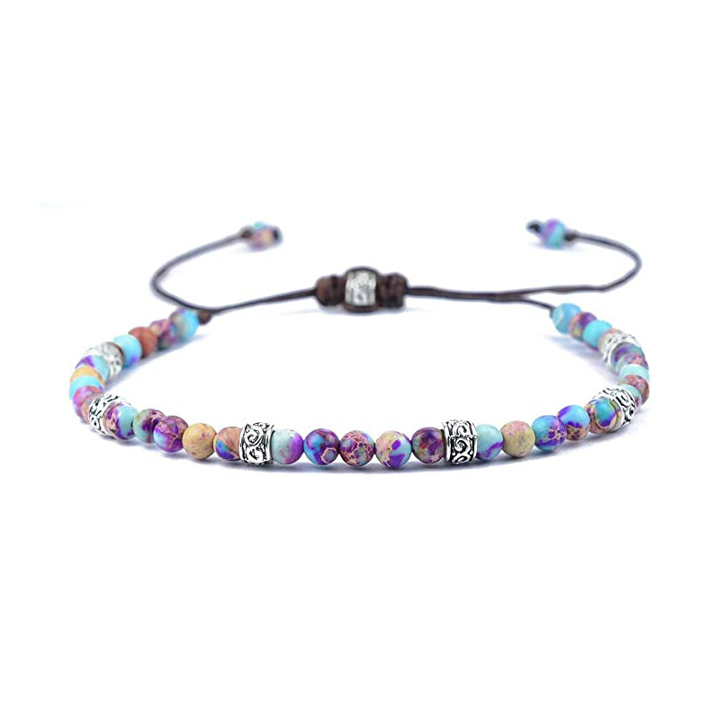 Bratara din pietre naturala reglabila pe snur, elemente placate cu argint, unisex, realizata manual, Tessero, mov si negru