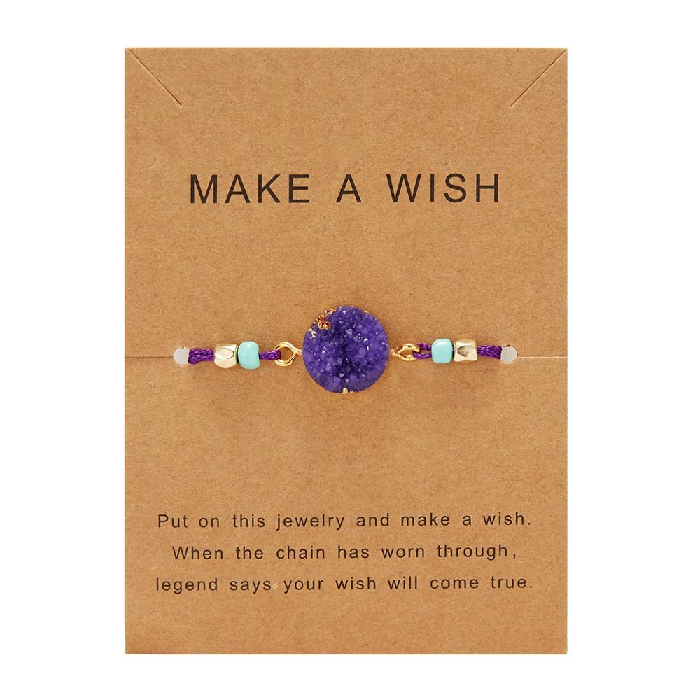 Bratara dorintelor cu snur reglabil, model piatra pretioasa, macrame, mov