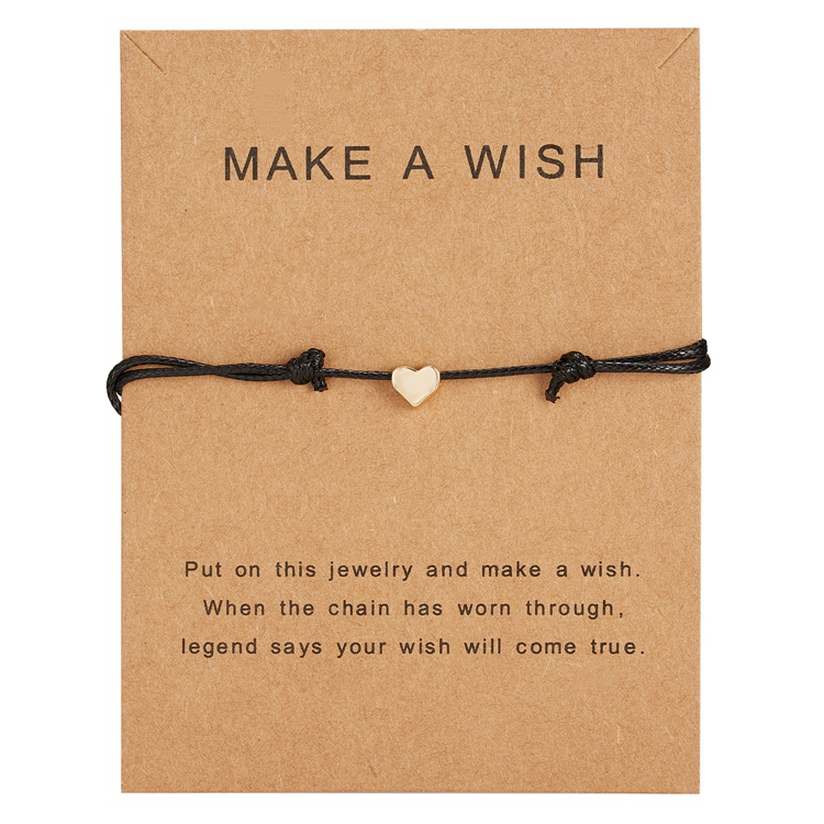 Bratara dorintelor cu snur reglabil, pandantiv in forma de inimioara placat cu aur 14k, negru