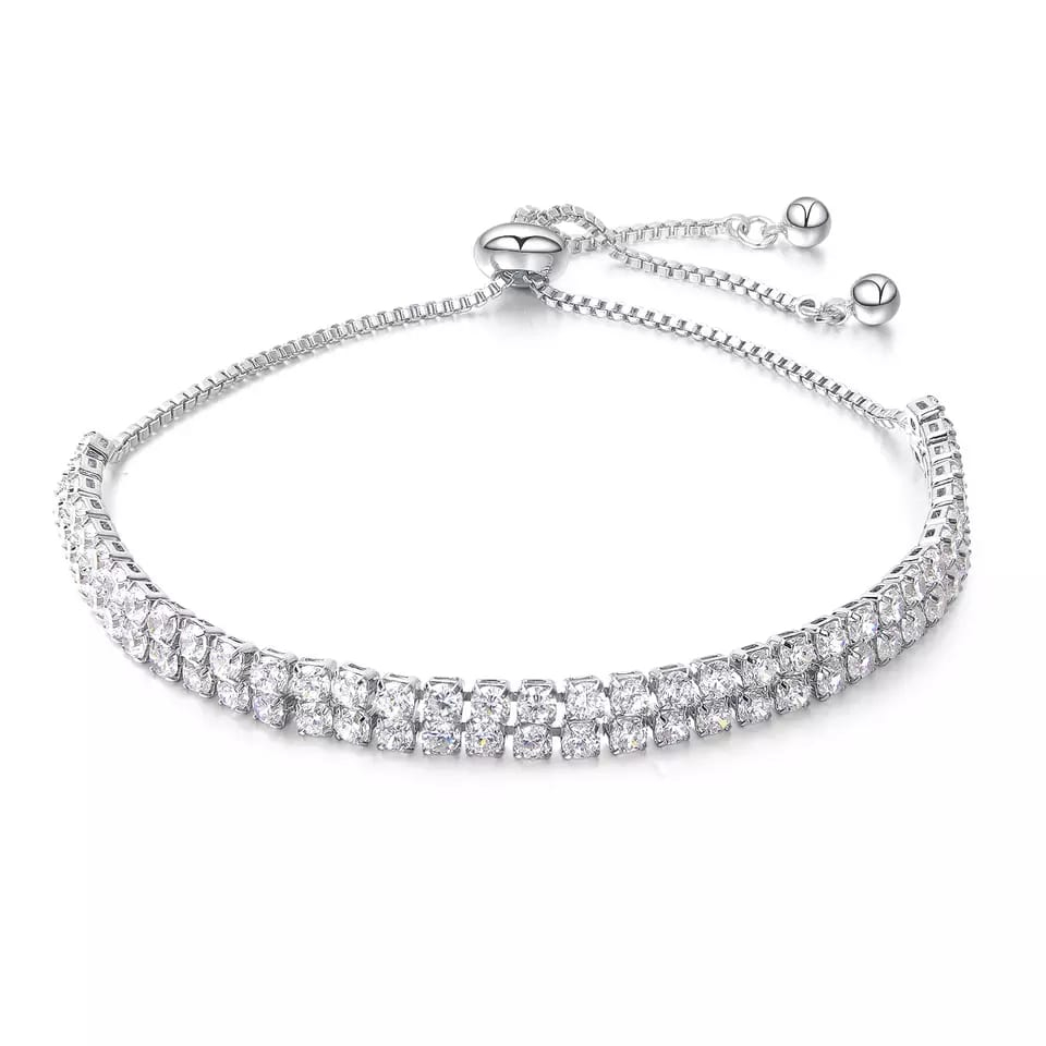 Bratara model tip Tennis cu doua randuri de pietre zirconiu, marime reglabila, placata cu aur 18K, Tessero, argintiu
