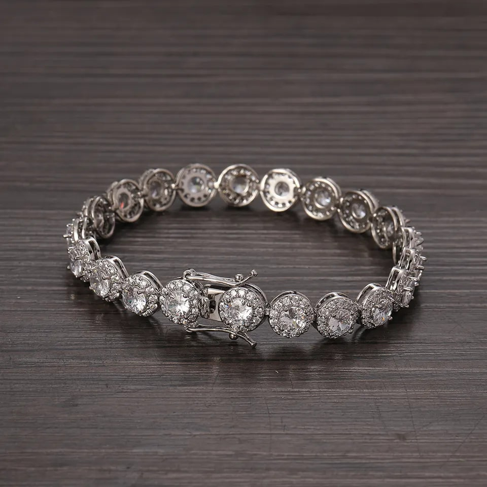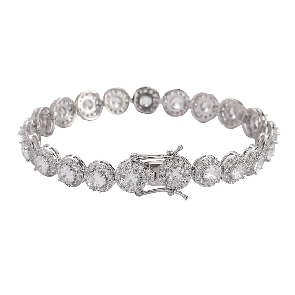 Bratara model tip Tennis de dama, taietura rotunda, prindere catarama cu siguranta, otel inoxidabil placat cu aur 18K, 18 cm, Tessero, argintiu