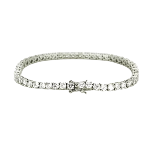 Bratara Tennis cu pietre zirconiu, placat cu aur 18K, inchidere cu catarama, 3 mm, 18 cm, unisex, Tessero, argintiu