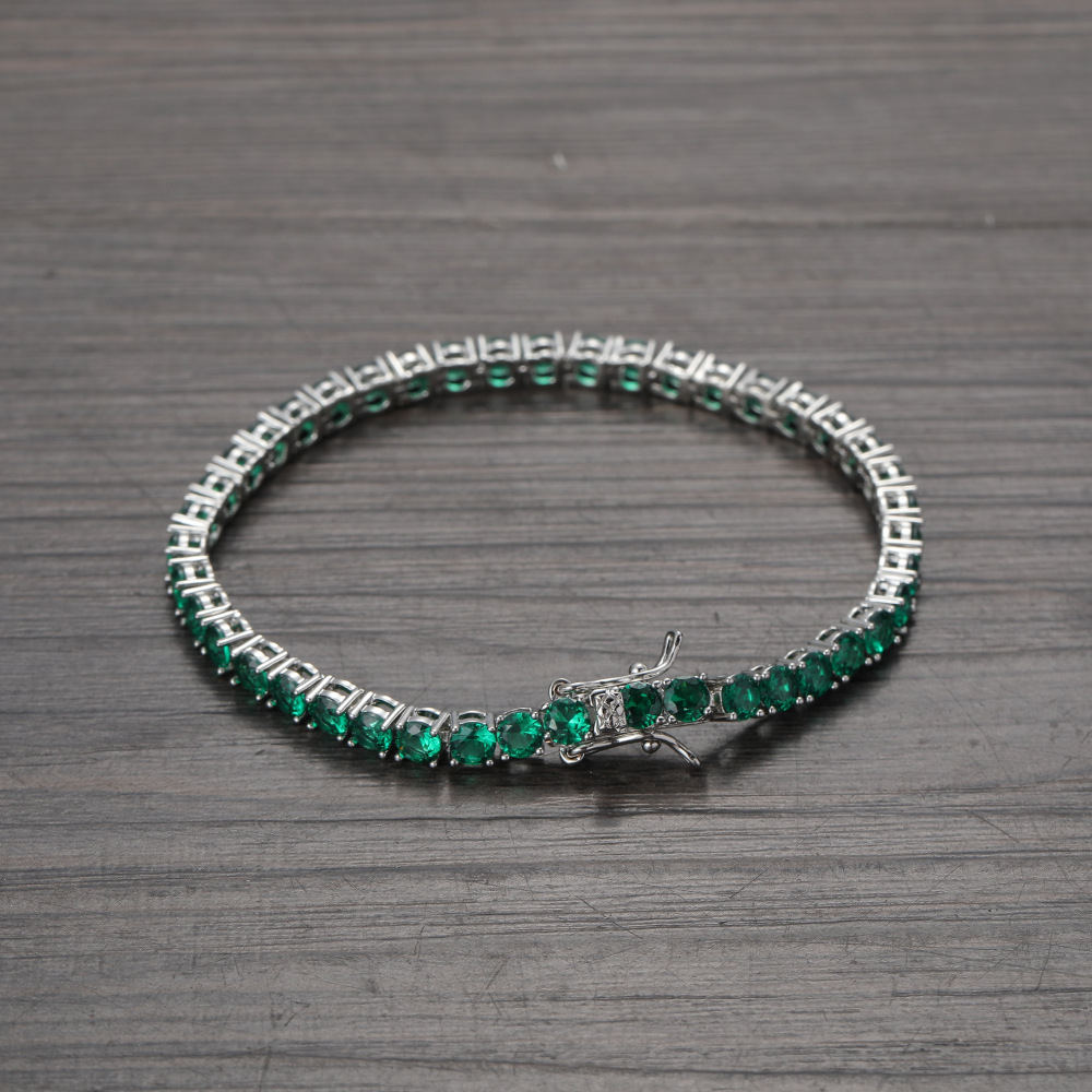 Bratara Tennis din otel inoxidabil, pietre zirconiu de culoare verde, 18 cm, placat cu aur alb 18K, unisex, inchidere cu catarama, Tessero, argintiu