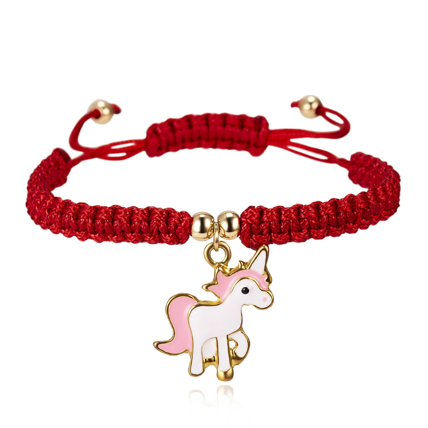 Bratara tip snur lucrata manual cu pandantiv in forma de unicorn, marime reglabila, rosu