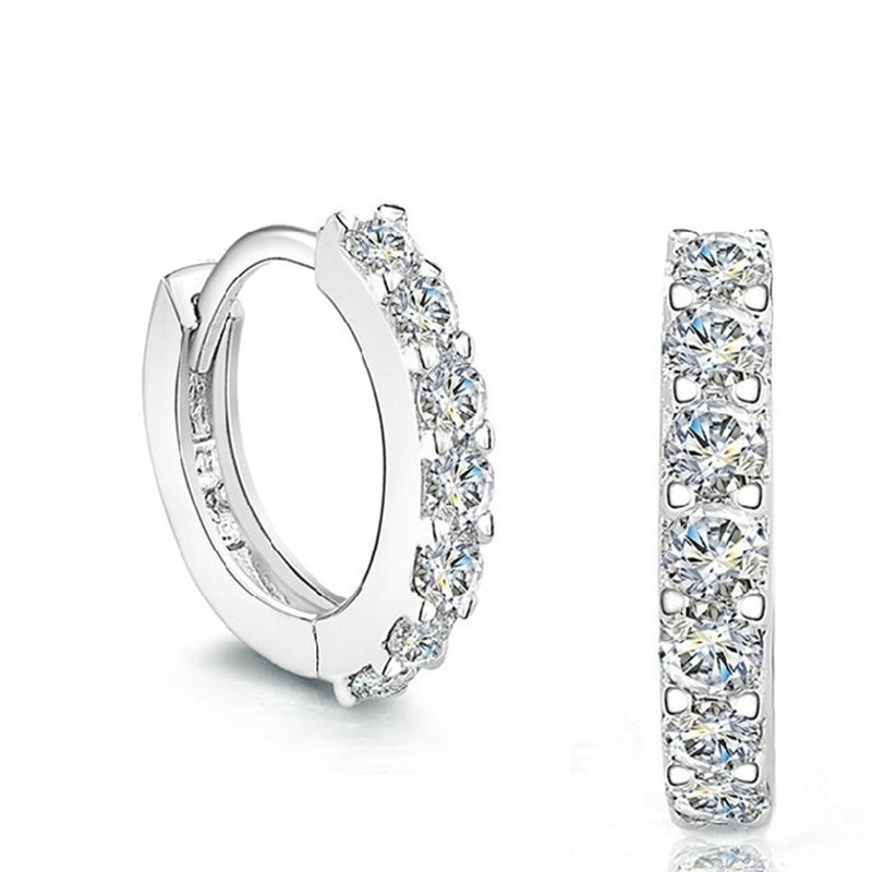 Cercei de dama rotunzi, pietre din zirconiu, argintiu