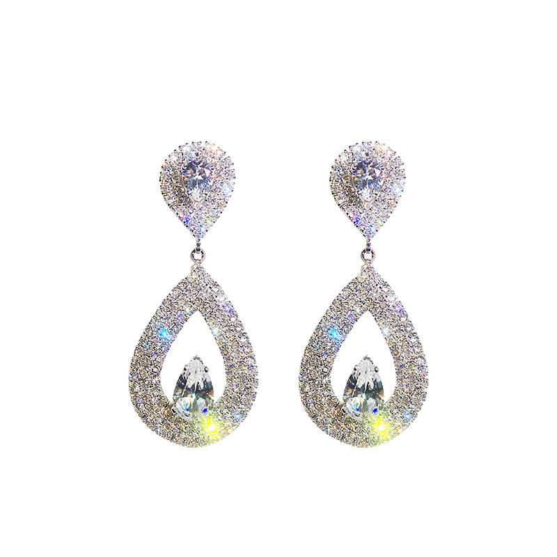 Cercei, rain drop, pietre zirconiu, placat cu argint, argintiu