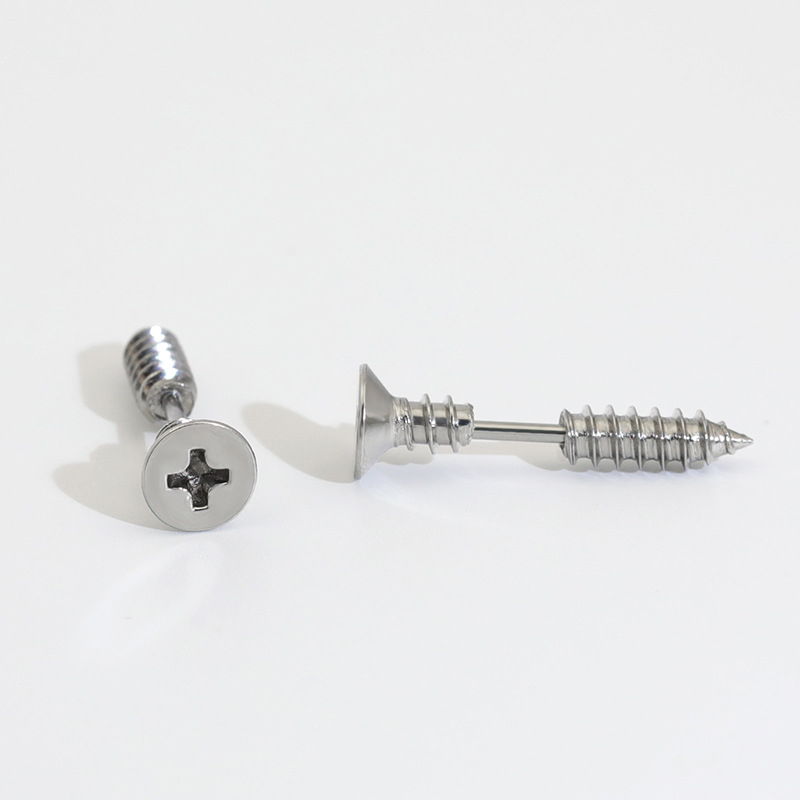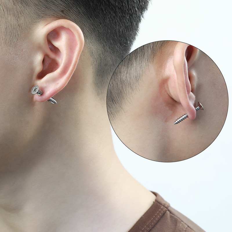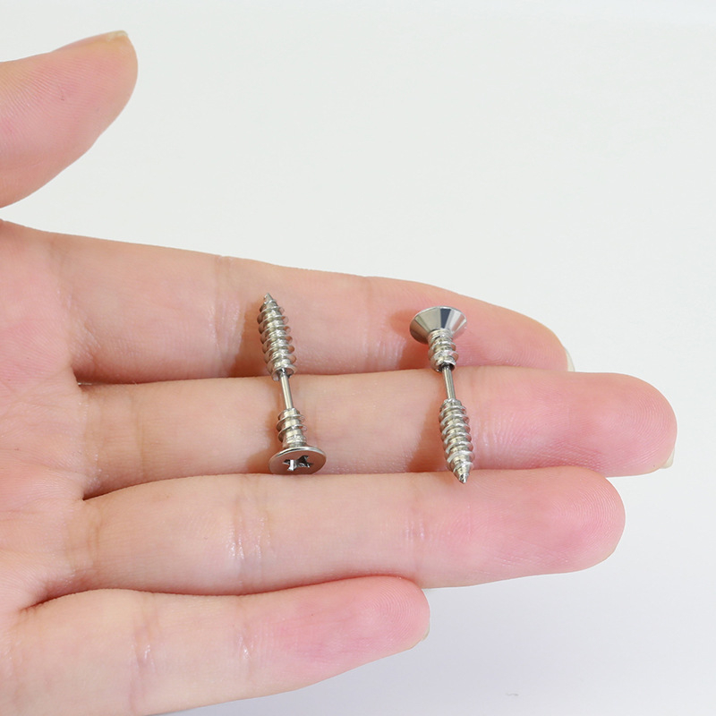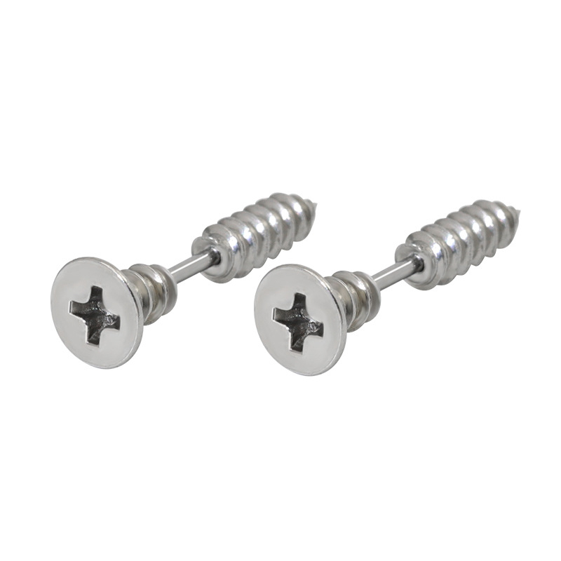 Cercei unisex Punk, model in forma surub, otel inoxidabil, placat cu argint, Tessero, argintiu
