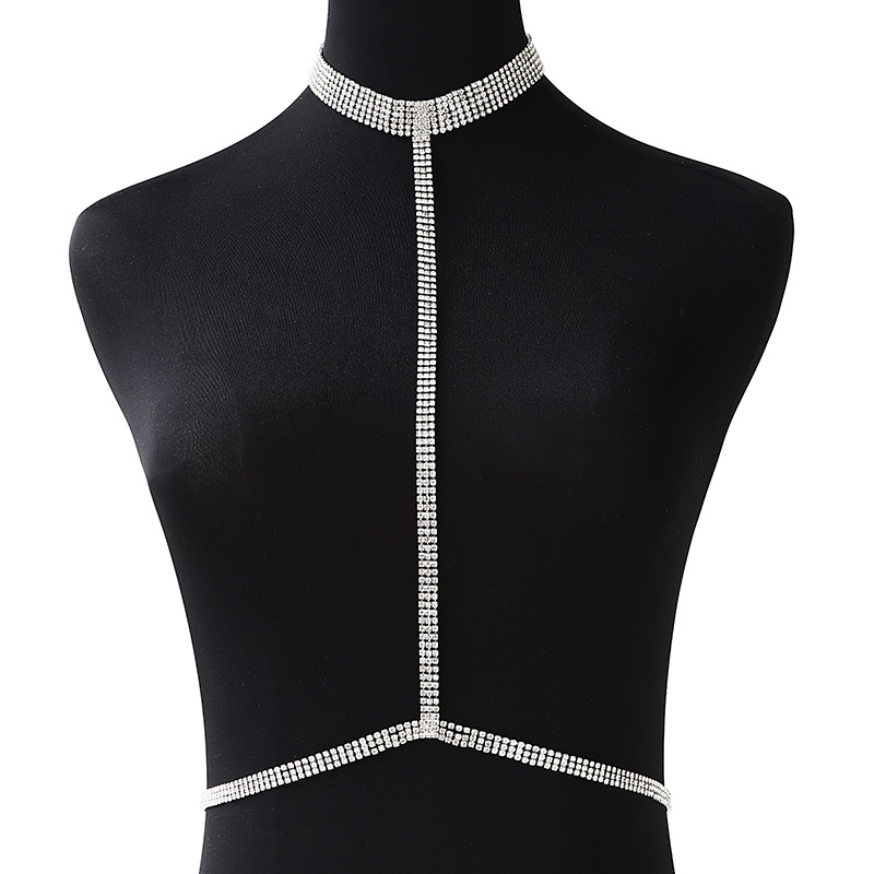 Colier baza gatului sexy cu prelungire pentru corp, pietre zirconiu, placat cu argint, marime reglabila, Tessero, argintiu